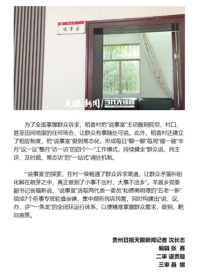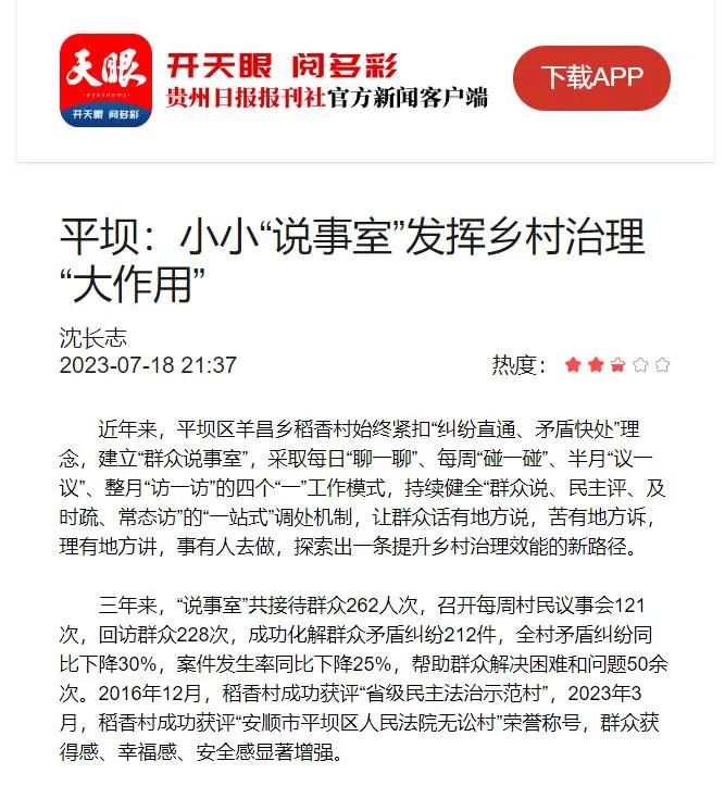 天眼新闻2023.7.18报道平坝:小小“说事室”发挥乡村治理“大作用”