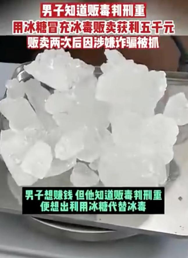 15.男子用冰糖冒充冰毒贩卖被抓:近日,湖北襄阳东津公安发现辖区有人在以冰糖冒充毒品贩卖牟利。民警循线调查,抓获嫌疑人石某。经讯问,石某交代自己曾因贩毒被公安机关刑事打击,刑满释放后不久便有人联系他买毒品。石某想赚钱,但深知贩毒判刑之重,于是便想出利用冰糖冒充冰毒的计划。目前,石某已被刑拘,案件正在进一步侦办中。(半岛都市报)