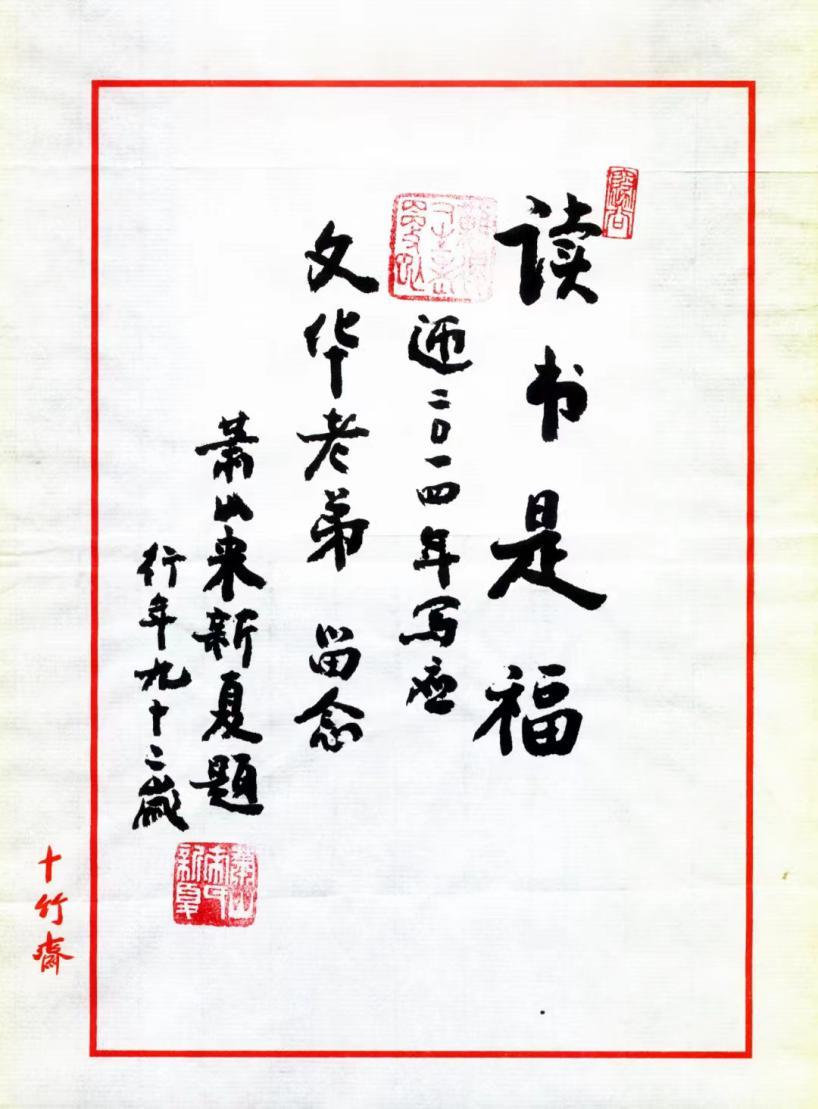 来新夏手迹:读书是福有人问我读书是如何入门的?