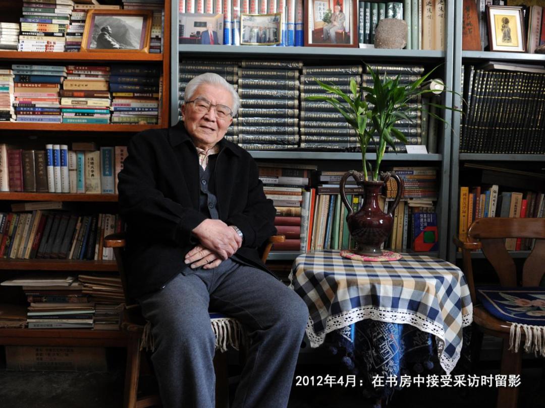2012年4月,来新夏在南开大学北村寓所接受媒体采访时留影有人问我读书究竟是为人,还是为己?