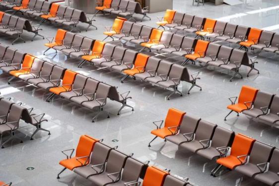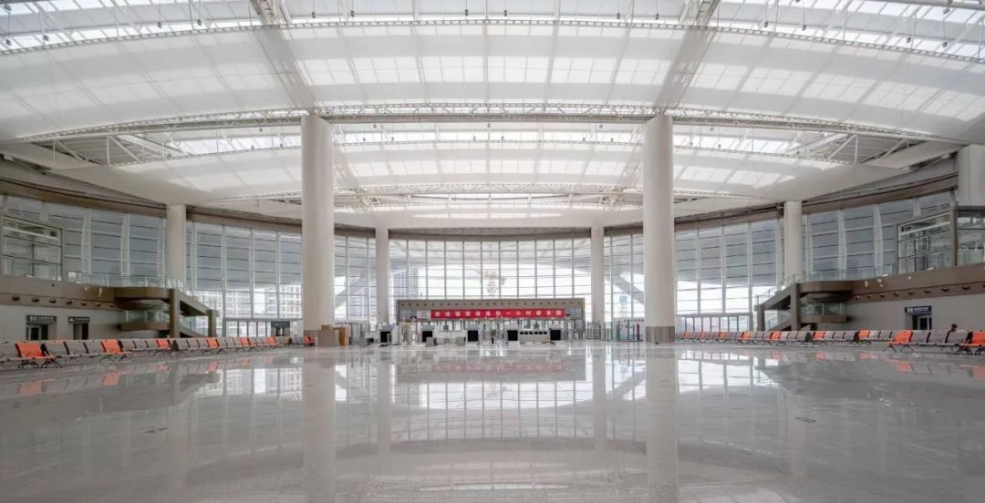 素雅明亮的候车大厅内黄色座椅点缀其中