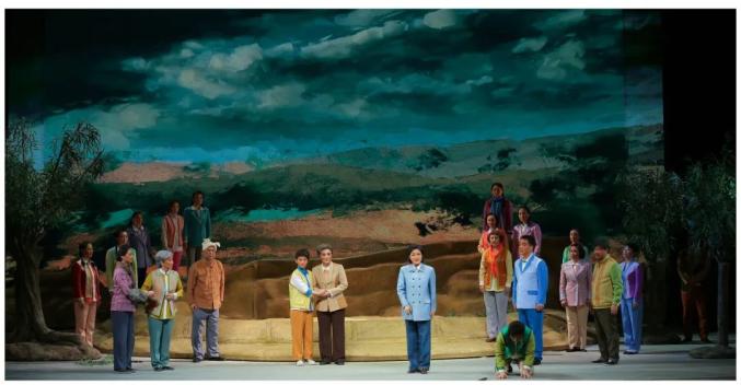 关于秦腔现代剧《生命的绿洲》,总导演陈蔚介绍,该剧一度创作十分扎实,剧本时间横跨近40年,运用穿插叙事和意识流的手法将女主人公何玉芳与她家人的事迹进行多时空展现,并且具有一定的寓言色彩。主创团队秉持“传统而不陈旧,创新而不突兀”的创作原则,从音乐上深入挖掘秦腔的优秀积淀,并将陕北民歌并用互补,展现出浓郁的地域特色。