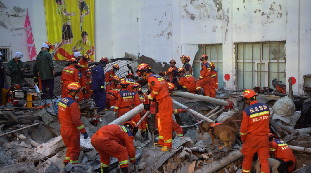 事故发生后,支队指挥中心立即调派39辆消防车、159名指战员、4头搜救犬赶赴现场救援,支队全勤指挥部遂行出动。15时10分,首批消防救援力量到达现场展开救援。黑龙江消防救援总队调派大庆市消防救援支队重型地震救援队12辆消防车、94名指战员、4头搜救犬前往增援,增援队伍已全部到达现场开展救援。