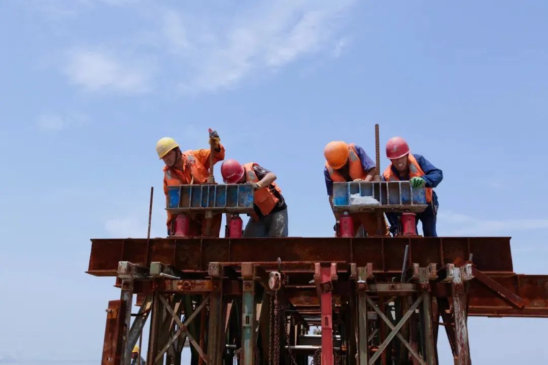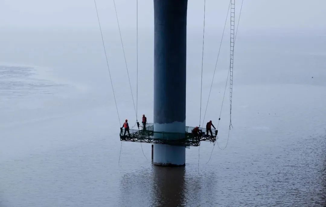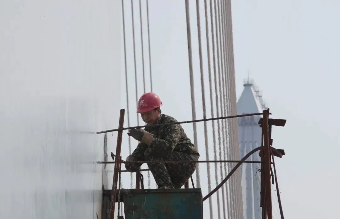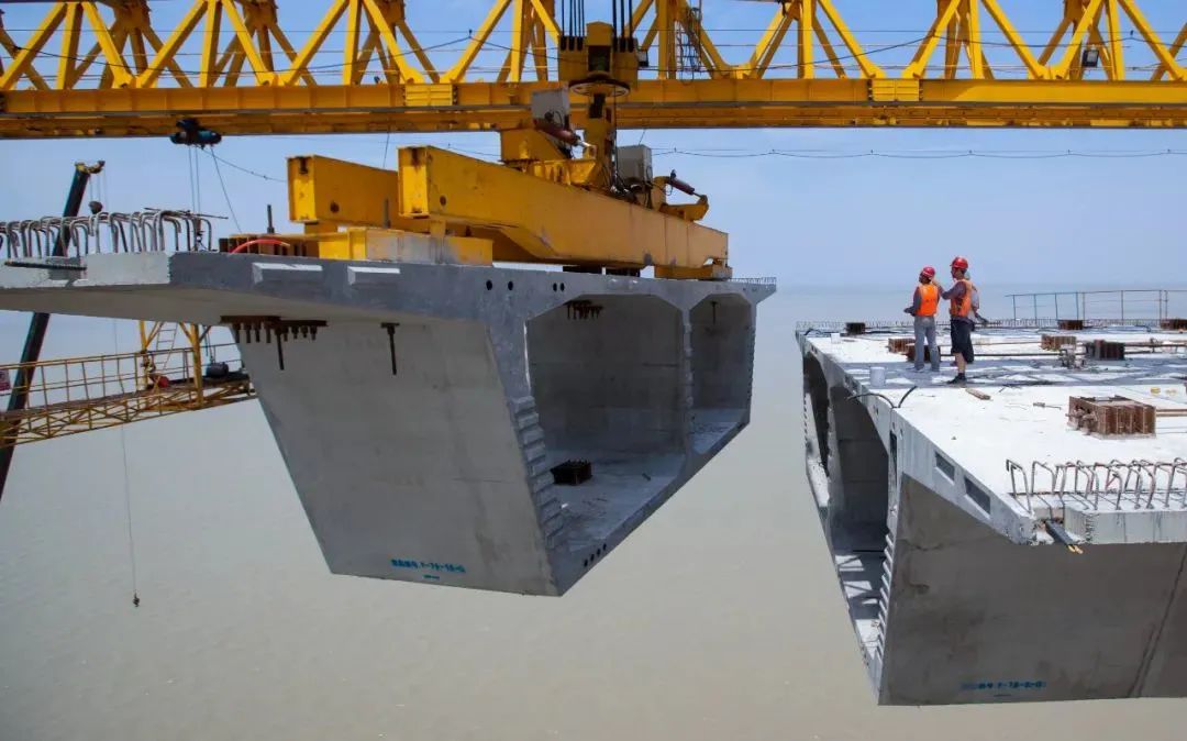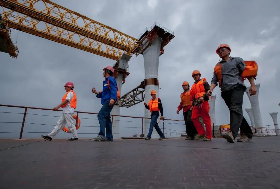 站在钱塘江边极目远眺,嘉绍大桥犹如一条“巨龙”飞跨钱江两岸;六座主塔犹如擎天柱巍然耸立,直冲云霄;一排排桥墩犹如一双双巨掌,将块块箱梁稳稳托起;桥身如同翻江巨龙蜿蜒伸向江心……