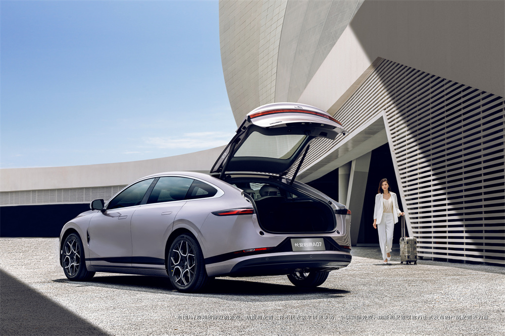 尺寸方面,新车长宽高分别为4905/1910/1480mm,轴距为2900mm,与深蓝SL03的高度和轴距基本一致,但定位中大型轿车的启源A07更长更宽,与比亚迪汉EV、小鹏P7i等车型的尺寸接近。另外,掀背式尾门也在这款产品上出现,与溜背式造型相呼应。