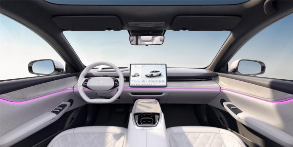 内饰方面启源A07整体设计风格简约,皮质包裹与木纹装饰,营造出相对素雅的家居风格。中控台中央配备大尺寸悬浮式中控屏,未采用液晶仪表盘,而是由双幅式多功能方向盘后方的小尺寸显示屏+AR-HUD抬头显示为驾驶员提供行车信息。