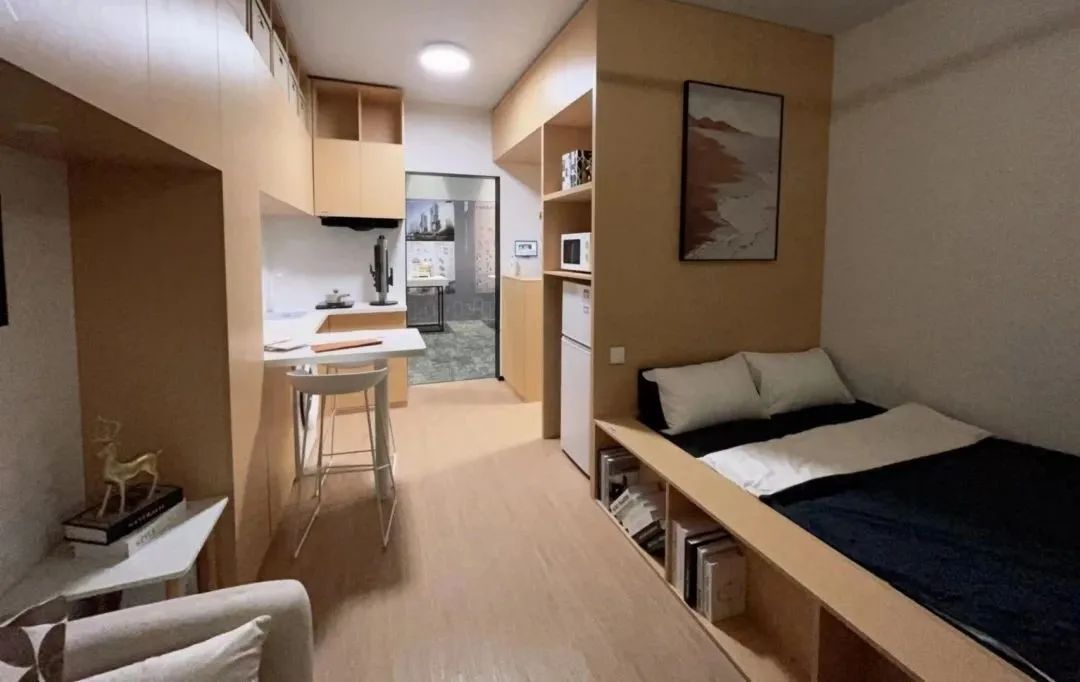 微棠聚焦青年公寓特点,秉持“在不影响房屋结构基础上优化户型”的原则,弱化独立厨房、客厅等使用率较低的空间,在公共区域配置服务设施,提升社区居住体验。