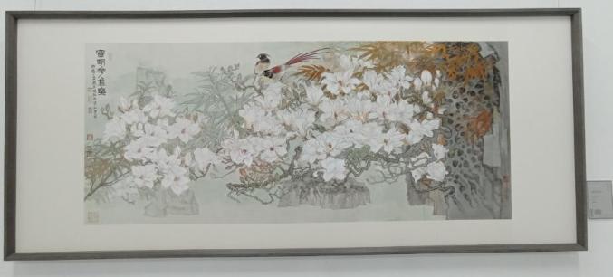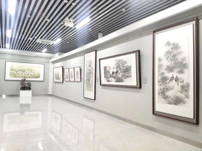 艺术馆进门沿着参观指引牌前行,就会来到一楼展厅,一楼展厅目前展出的是《各美其美 美美共赏一一陇西书画名家联展》和《素心蕴美——莫晓松工笔花鸟画精品展》。