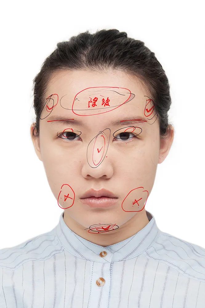 摄影师卢禹凡拿着自己的肖像,去不同的整形医院寻求诊断,让“美丽设计师”在她脸上画下诊断和“治疗”方案。