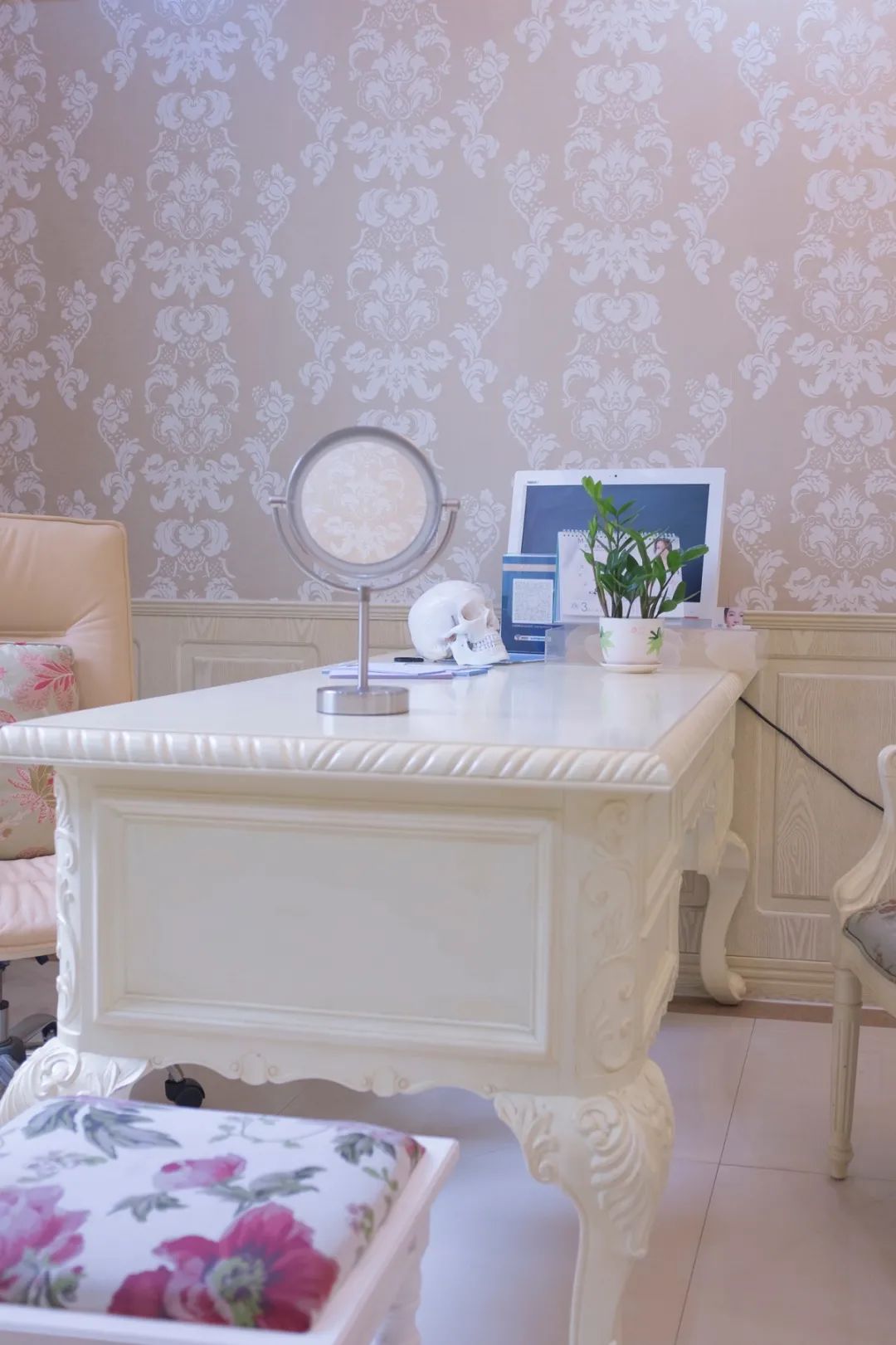 场景的话,我会选一些看起来半商业、半医疗的装修风格。我发现在一个试图强调医疗专业性的环境里,又会有一些小碎花类的装饰,或者镶着欧式金边的家具,蛮奇特的。