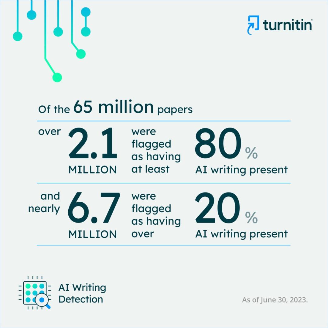 Turnitin AI detection feature reviews more than 65 million papers | Turnitin (https://www.turnitin.com/press/turnitin-ai-detection-feature-reviews-more-than-65-million-papers?utm_source=twitter&utm_medium=organic&utm_campaign=communications)