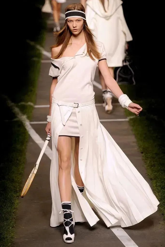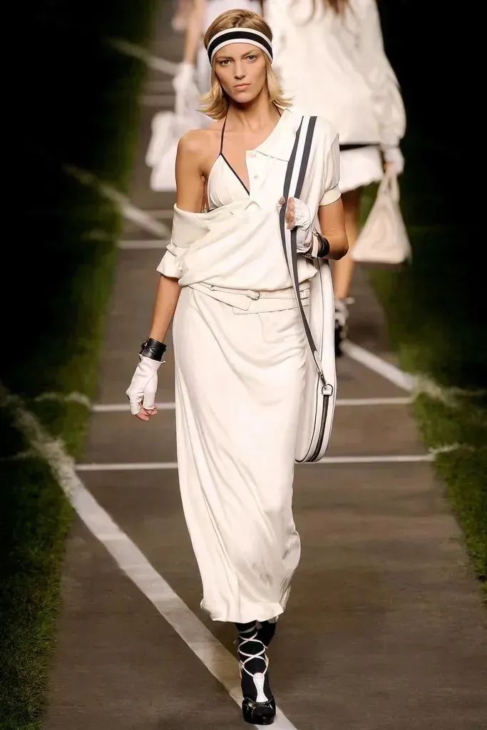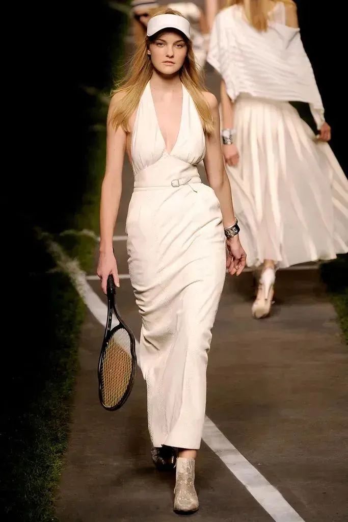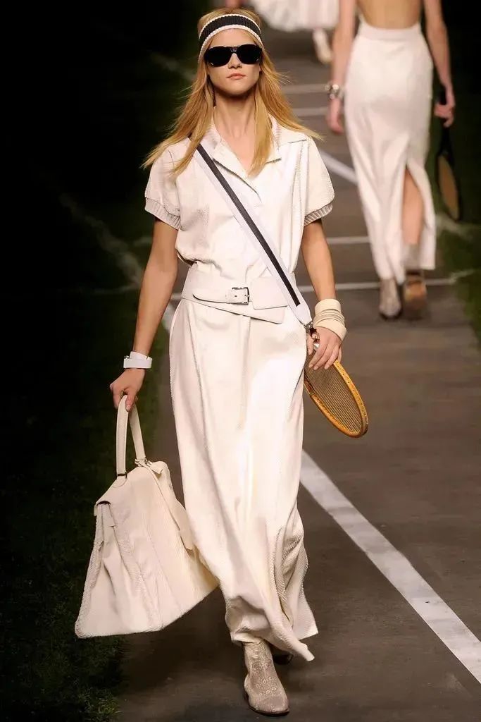 在2010年爱马仕的春季中,以网球穿搭的all-white为灵感,计裁剪大气,模特们拿着网球拍走上秀场,举手投足之间透露着一种酷飒与笃定。