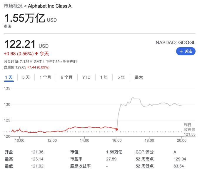 ▲谷歌母公司Alphabet盘后股价一度涨超8%(图源:谷歌财经)AI技术爆发引发的科技巨头竞赛愈演愈烈。AI技术为微软和谷歌的业务带来了什么实质影响?作为AI的底座,微软智能云和谷歌云增长如何?这又给国内云与AI产业带来了什么参考?通过拆解微软和谷歌的财报信息,本文对此进行了深入解读。