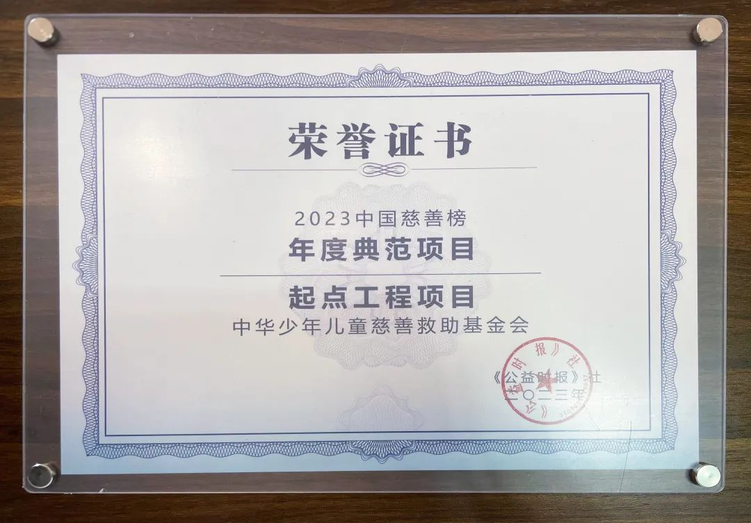 2、5月18日,“起点工程”致力于搭建学前教育公益联合平台,推动困境幼儿学前教育的发展,获得社会各界广泛认可,荣膺第二十届(2023)中国慈善榜“年度典范项目”。