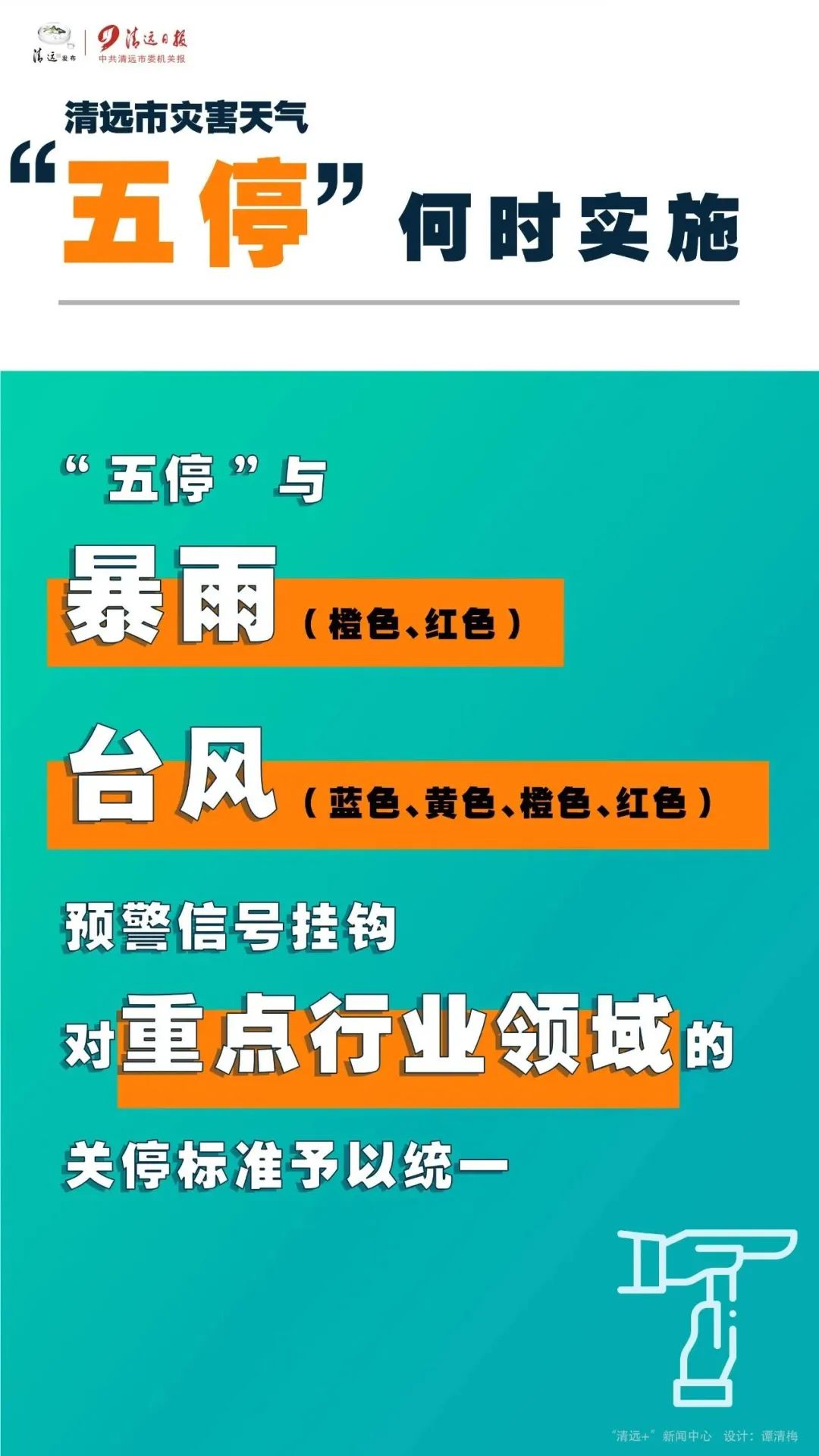 近日,市应急办、市三防指挥部联合下发《清远市灾害天气“五停”工作指引》(以下简称《指引》),进一步明确清远灾害天气下“五停”实施条件。