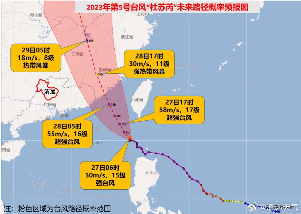 今年第5号台风“杜苏芮”将于7月27日下半夜到28日上午在粤东到闽南一带沿海登陆。