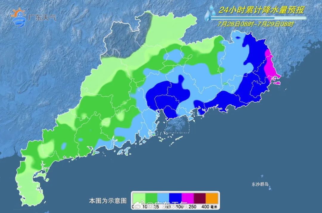 7月28日8时—7月29日8时降水量预报(图源:广东天气)