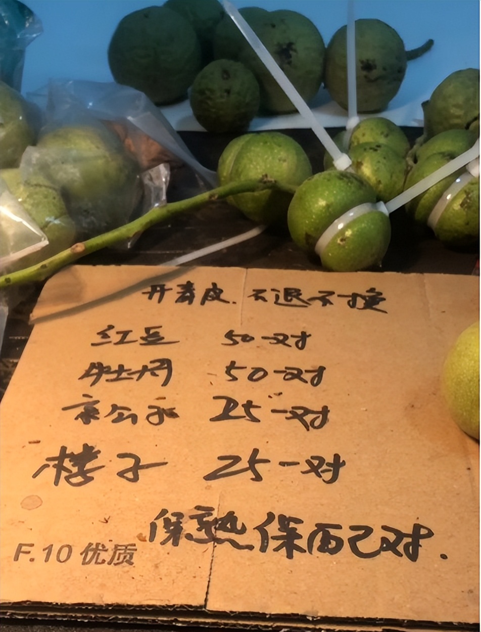 在直播中,很多主播还会向消费者普及“开青皮”的“独门秘籍”。拼多多平台一位主播向记者介绍,“开青皮”首选“同树果”,最好是“同枝果”,这种核桃果实的纹路、质地、颜色最为相似。其次是看尺寸,青皮就像是外衣,其高矮胖瘦完全由里面的核桃决定,可以通过量尺寸,掂重量,捏一捏,去感受一下青皮的厚度,大概估算出果实的大小。一般情况下,青皮尺寸减去1—2厘米,就差不多是核桃的真实尺寸了。