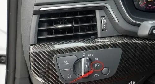 这个类似近光灯和远光灯,但是光线方向被波纹遮挡的就是雾灯的标志了。将灯光拨杆转向这个标志即可开启雾灯。德系车的雾灯是在旋钮开关上,不同车系打开方式不同,大众车系比如速腾是旋转到近光灯位置,然后往外拉,拉一档是前雾灯,拉二挡后雾灯点亮。奥迪的开关则是在旋转开关上有两个雾灯的标志,按下即可点亮。