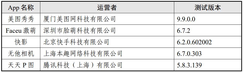 近期,中国网络空间安全协会、国家计算机网络应急技术处理协调中心对“拍摄美化类”公众大量使用的部分App收集个人信息情况进行了测试。测试情况及结果如下: