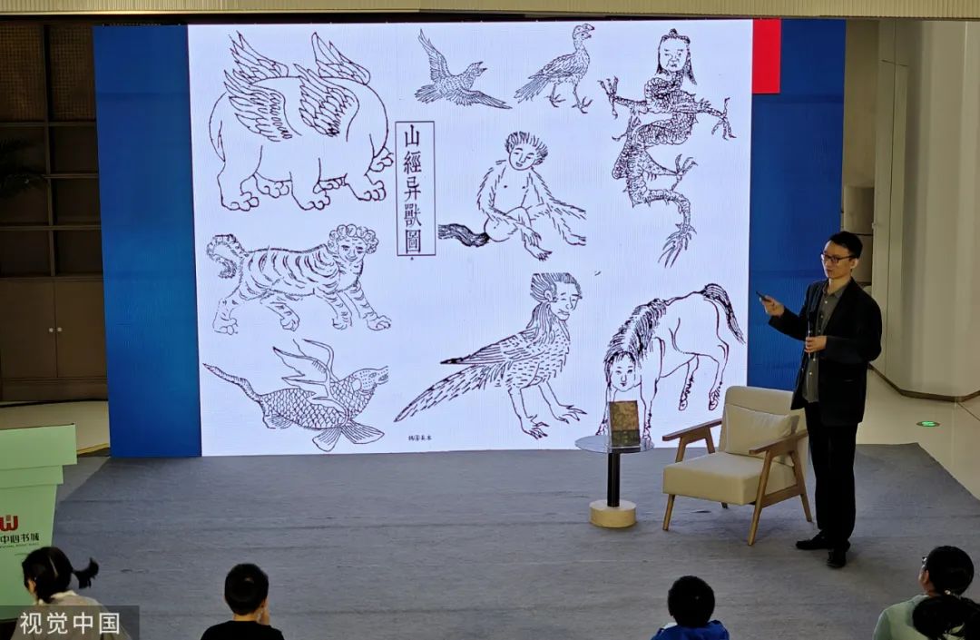 2023年4月22日,武汉,在“世界读书日”来临前,北京语言大学文学院教授刘宗迪做客武汉中心书城大型都市文化夜读活动,作“《山海经》的神话与科学”的讲座。(图/视觉中国)