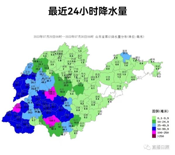 山东省气象台于7月30日06时00分继续发布暴雨黄色预警:受“杜苏芮”残余低压环流影响,30日,聊城、德州、滨州、济南、泰安、济宁、枣庄和临沂有中到大雨局部暴雨,其他地区有雷雨或阵雨;31日,鲁西北、鲁中和鲁南地区有小到中雨局部大雨转多云,其他地区局部有小雨转多云。