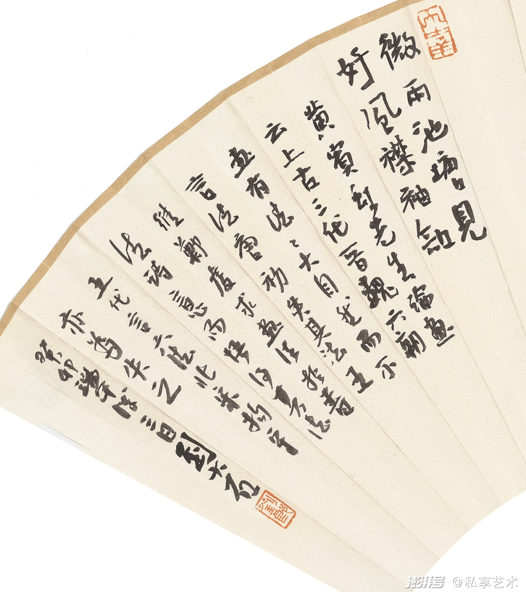 于是,岁逢消夏,挥扇为快,岂无笔墨。书扇画扇,藏之赏之,一时之快,一世之情。