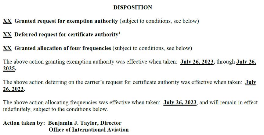 批准中,美国交通部要求美国东方航空必须在90天内执行航班,一旦超过期限,此次批准将会失效。