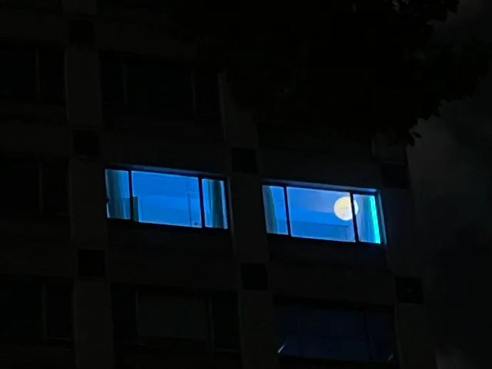 p5是走到地铁站附近一抬头看见的,不知道又是谁在驾驶这夜晚的蓝色的潜水艇呢……