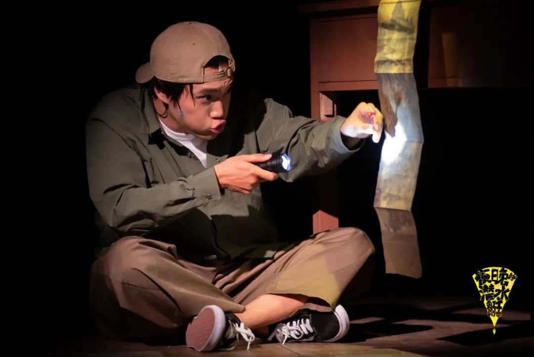 《夜晚的潜水艇》真是一部特别适合夏天夜晚的戏,回来的路上又一直在想它也特别适合D6。舞台不大不小,没有遮挡,帘子垂下来刚好剩下一块空地供演员跳出戏来用旁观者的视角带观众,帘子收起来里面暖黄色的光照射,从观众席看去也刚刚好像画框里充满金色光芒的童年回忆景象。戴着眼镜的白倬铭过去拉开帘子走进画框里,摘掉眼镜回到想象驰骋的少年时光;一切收束,又戴上眼镜拉起帘子回到当下,恢复旁观者的讲述视角,转身离开,好像刚才的一切都只是一场梦。