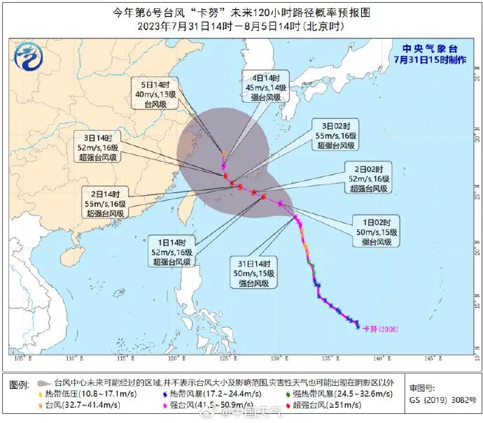 湖南省气象台预计,“卡努”将于8月2日夜间移入东海,随后逐渐转向偏北方向移动。目前判断,对湖南基本无影响,但移动路径调整较大,仍有不确定性。