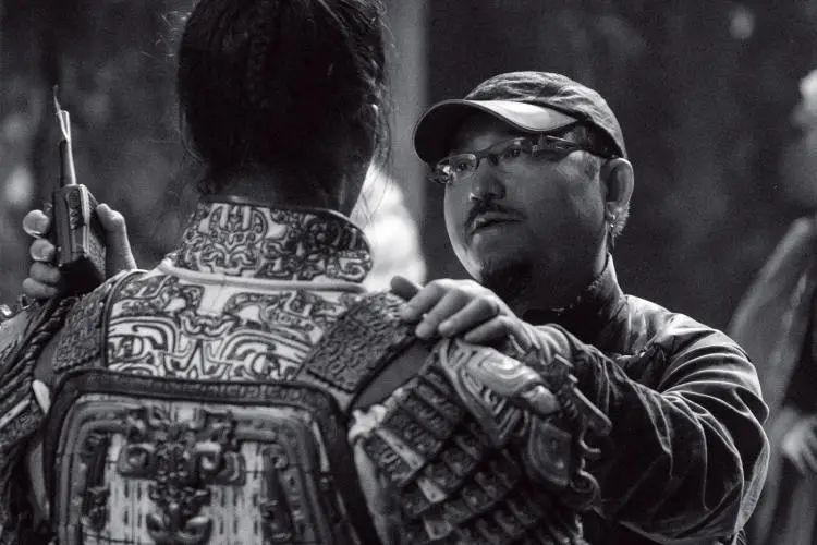 导演乌尔善在拍摄现场给演员讲戏。(图/由被访者提供)