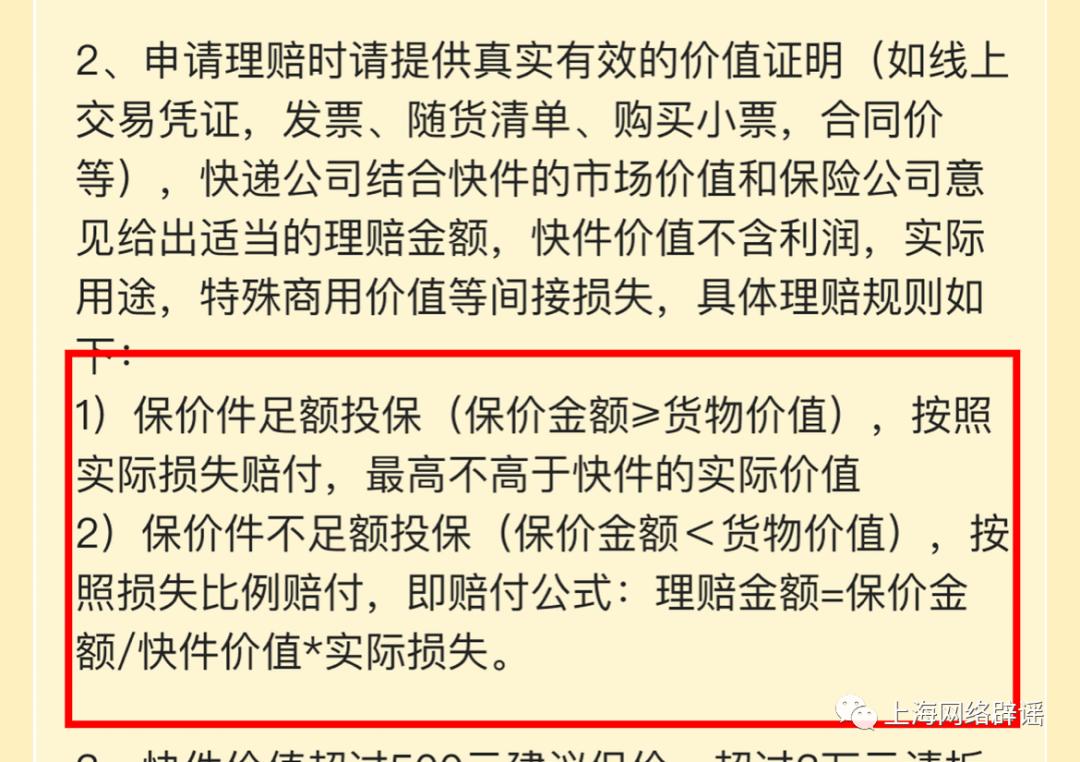 记者查询了快递企业的理赔规定后发现,沈女士没算错。相关企业的规定基本一致,即当保价申报价值低于托寄物实际价值时,“理赔金额=实际损失金额*(保价价值/托寄物实际价值)”。