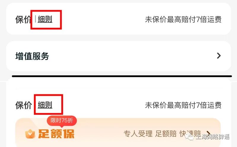 记者发现,各快递企业提供“保价”选项时,都是简单的勾选,并不提供简单明了的服务介绍;消费者只有点击选项旁的问号、“细则”等图文提示标签,才能查看具体的保价和理赔规则。而且,相关规则动辄数千字,仔细看一遍得花不少时间。
