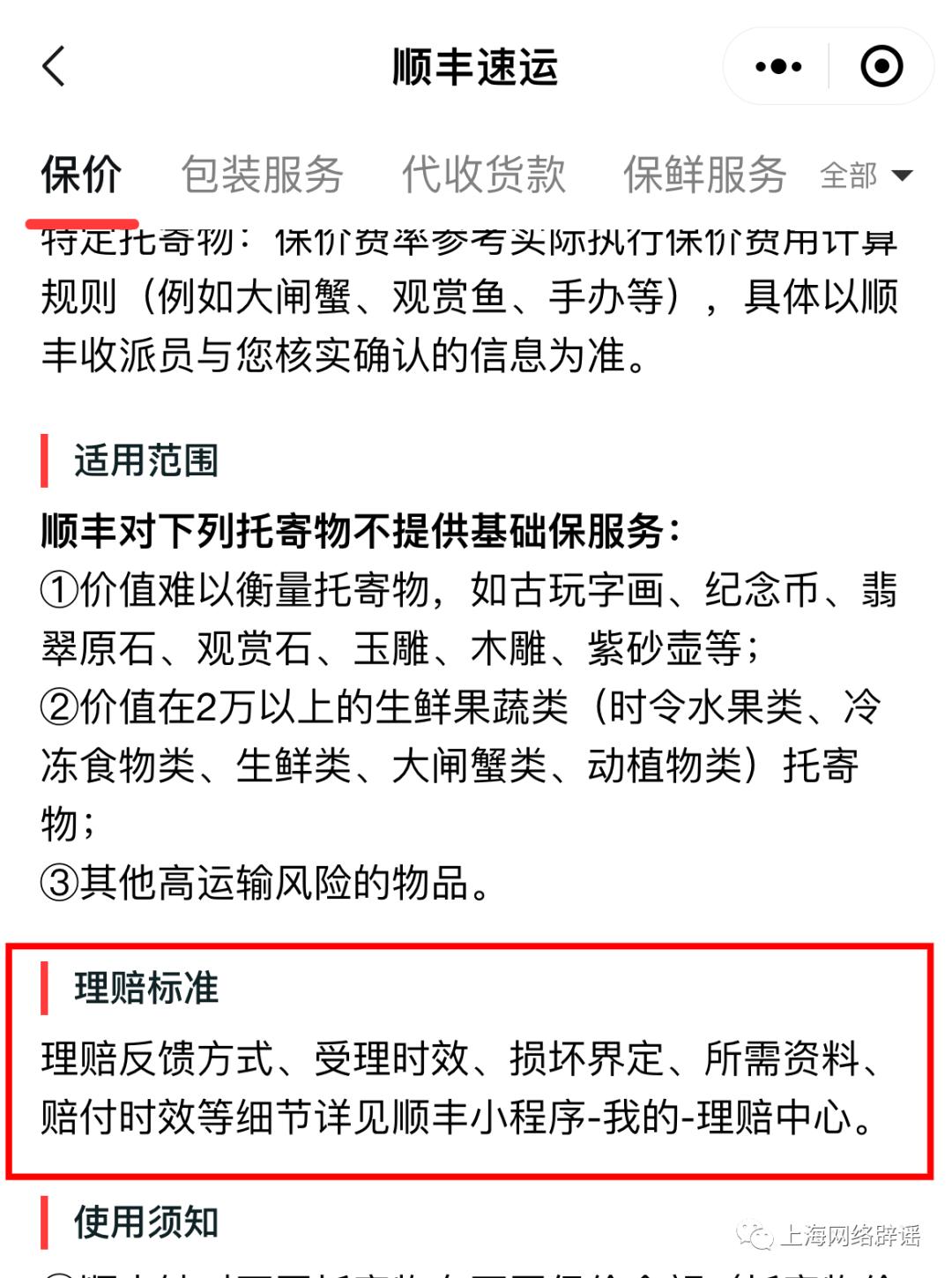 顺丰的保价服务有3种,虽然用具体案例介绍了不同服务的区别,但入口很深,消费者需特意查找才能看到“归根结底,快递企业仍旧在用合同排除自身责任,并没有换位思考,把消费者权益放在首位。”陈浩认为,快递企业的保价和理赔信息入口较深,消费者查找后才能看到细则;介绍也比较专业艰深,可能引发理解偏差,“企业也许觉得这样就是履行了‘清晰告知’的义务,但在消费者眼里,这些条款、文字离‘简单明了、通俗易懂’有很大的距离。”