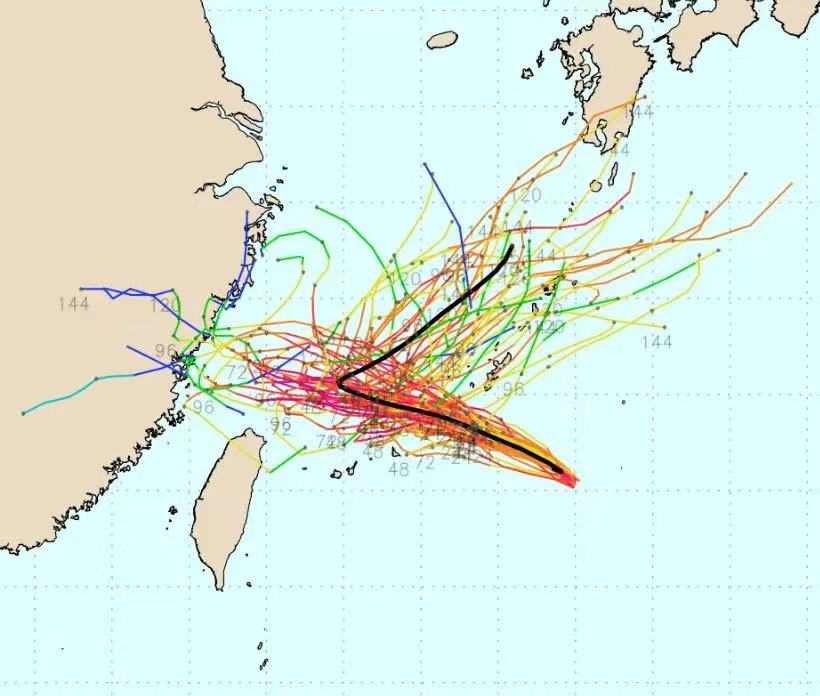 由于对副热带高压形态预测存在分歧,加上海上对流活动活跃,目前各大预报模式对于“卡努”未来走向仍存在较大分歧。