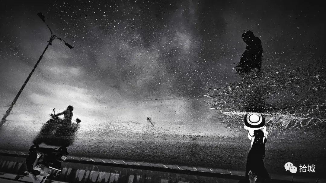 郑州-2023年7月2日,暴雨过后道路积水很多,一位骑独轮车少年溅水冲过前方,画面反转好似满天繁星。拾城者 王晨阳