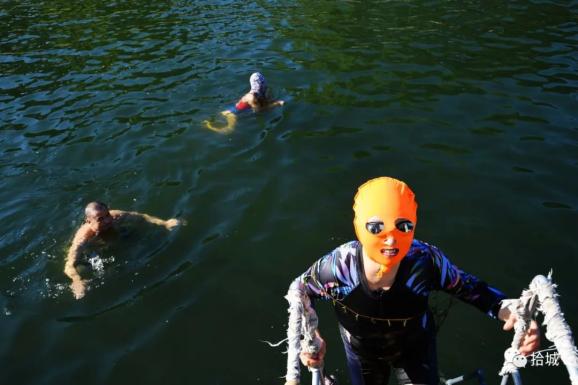 北京-2023年7月9日,八一湖,戴脸基尼游泳的女士。拾城者 杨军