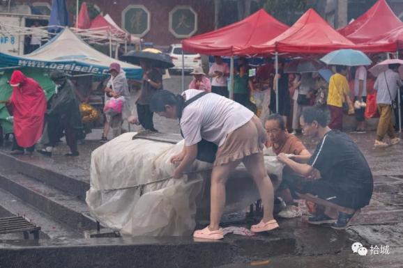 浚县(河南)-2023年7月11日,碧霞宫暖寿节,一场突如其来的大雨让商贩们措手不及。拾城者 朱林