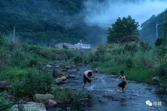 常德(湖南)-2023年7月20日,傍晚时分,两个孩子在小溪里戏水。拾城者 田辉举