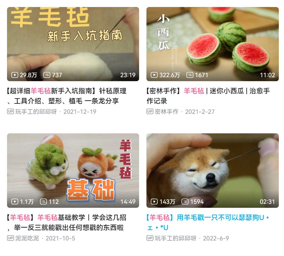 有关戳羊毛毡的视频。(图/哔哩哔哩)