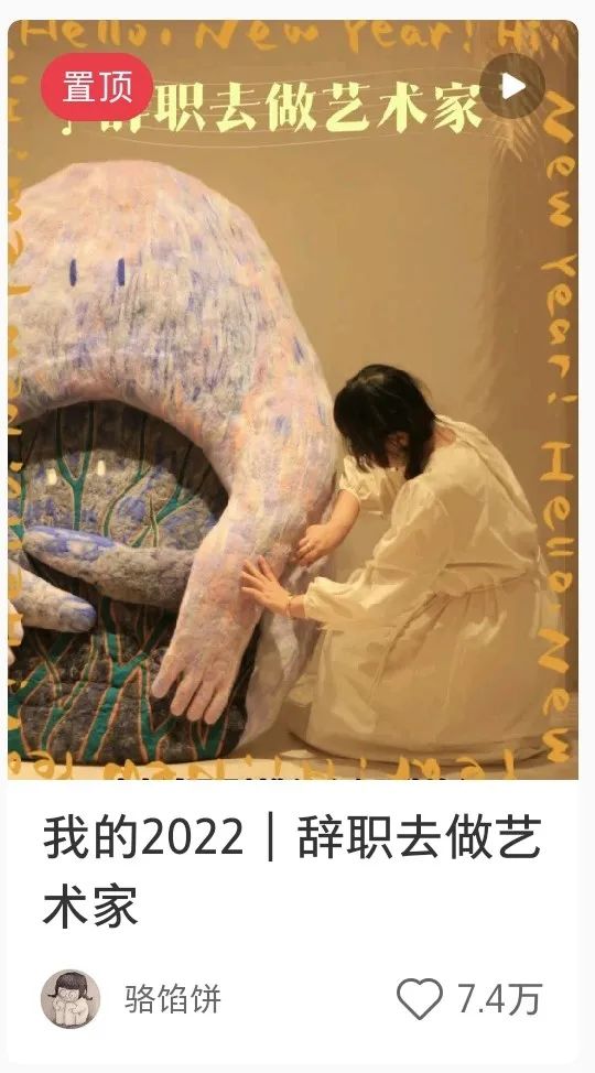 辞职后,骆馅饼做了一个2.5米高的《发呆的小女孩》羊毛毡雕塑,她想象它是“沉默疏离、柔软脆弱的另一个自己”,累了可以靠着,一起发呆,一起做一场白日梦。17岁时,骆馅饼的梦想是做一名自由艺术家。如今,这个“白日梦”终于有机会实现了。