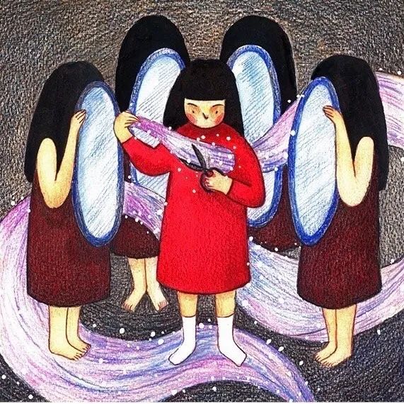 比如《躲在衣柜的小孩》,来自骆馅饼小时候的真实经历,她经常躲在衣柜里来逃避世界的吵闹,这就是她逃离现实生活的秘密基地。