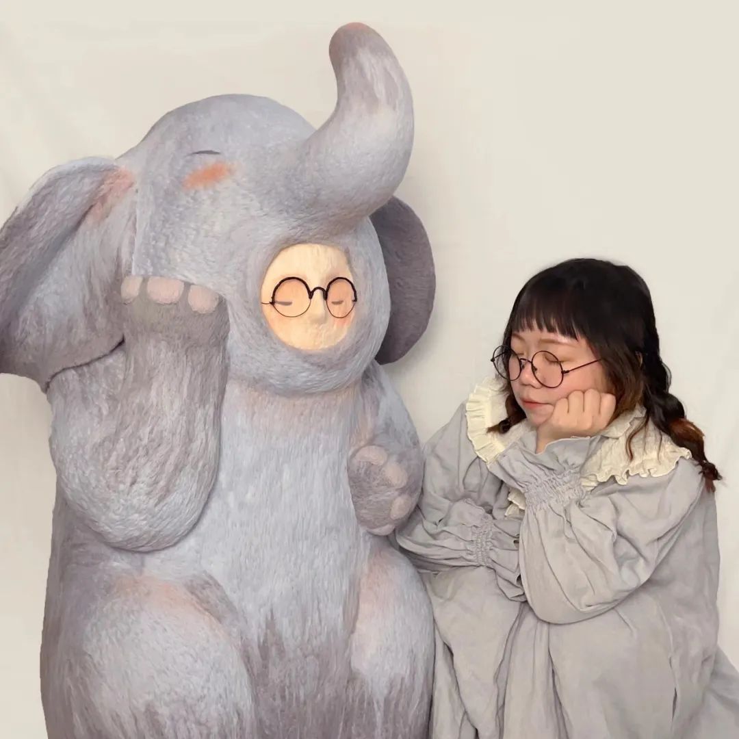 戳羊毛的过程其实有很多重复,甚至繁重的工作。比如在做《兔子的安睡》这个作品时,因为兔子的脚在地面,需要不断调整角度去戳,弯腰和坐着都很难操作,骆馅饼不得不躺在地上戳。