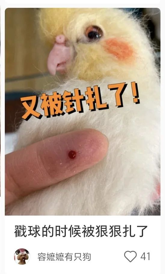 网友戳羊毛时被针扎。(图/@容嬷嬷有只狗)为了戳《躲在衣柜的小孩》,骆馅饼的手指和手腕曾异常疼痛,贴了一个月的膏药, “吃饭都端不起饭碗儿”。