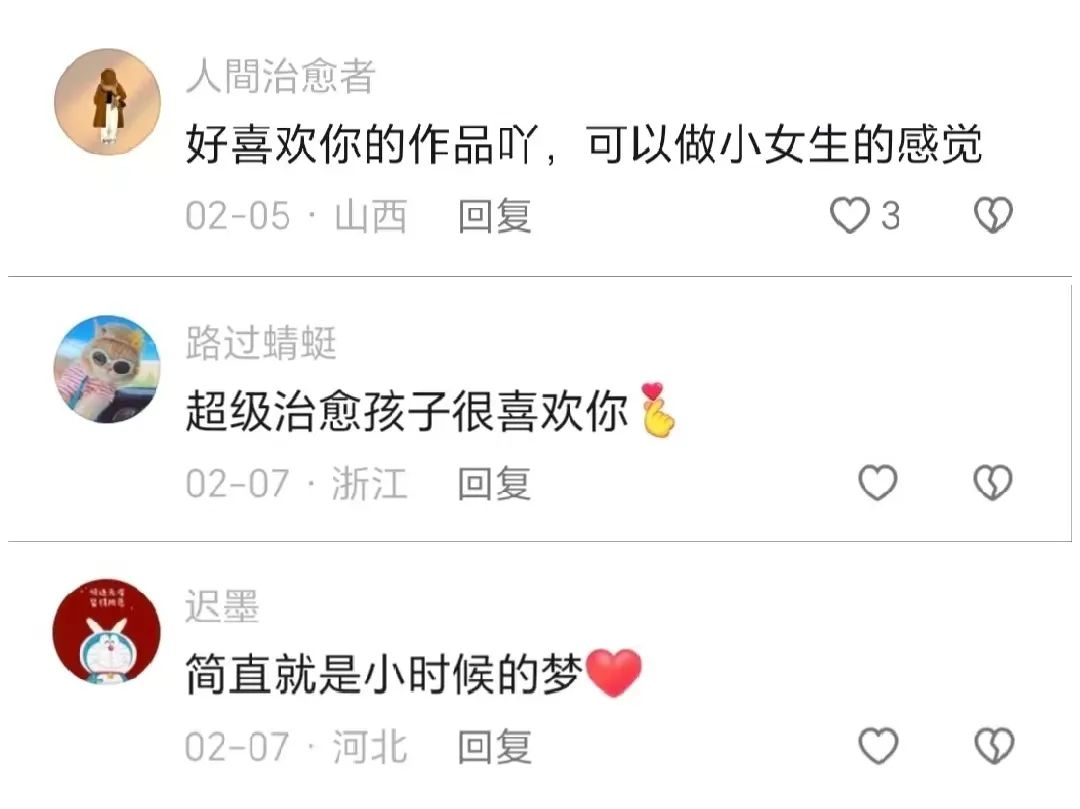 骆馅饼作品《兔子的安睡》及网友评论。这是一种认同,就像海豚发出不同频率赫兹,渴望在汪洋大海中找到同伴。被羊毛毡打动的人,也都有着非常柔软的部分:“原来我并非孤独的,人类的感情是相通的。”