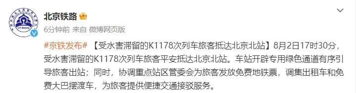 原标题:《最新消息丨滞留的K1178次列车旅客,平安抵达北京!》