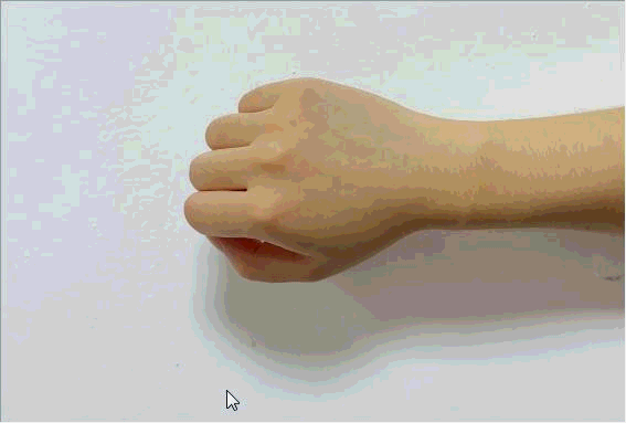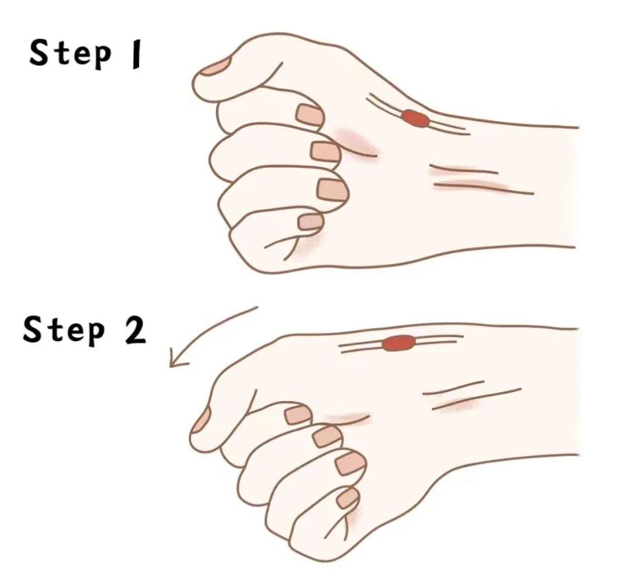 请伸出你经常使用手机的那只手。1.大拇指握在手心里,手腕向小拇指侧方轻轻向下压。