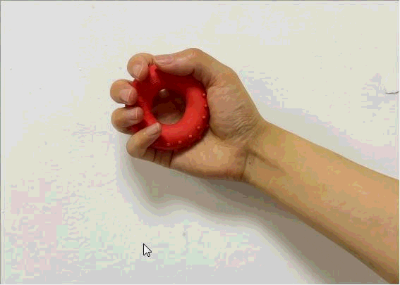 使用握力球,缓慢增加力量,捏住握力球保持5s,缓慢放松,重复10组。