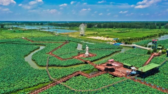 该景区是一处以皖北独特风情为特色,以荷乡景观和悠久的历史文化为内涵,集休闲旅游和美学于一身的荷乡生态旅游精品景区。主要包括“一河四区”,“一河” 为洪河分洪道, “四区”则分别综合服务区、游乐体验区、荷塘观光区、活力休闲区。